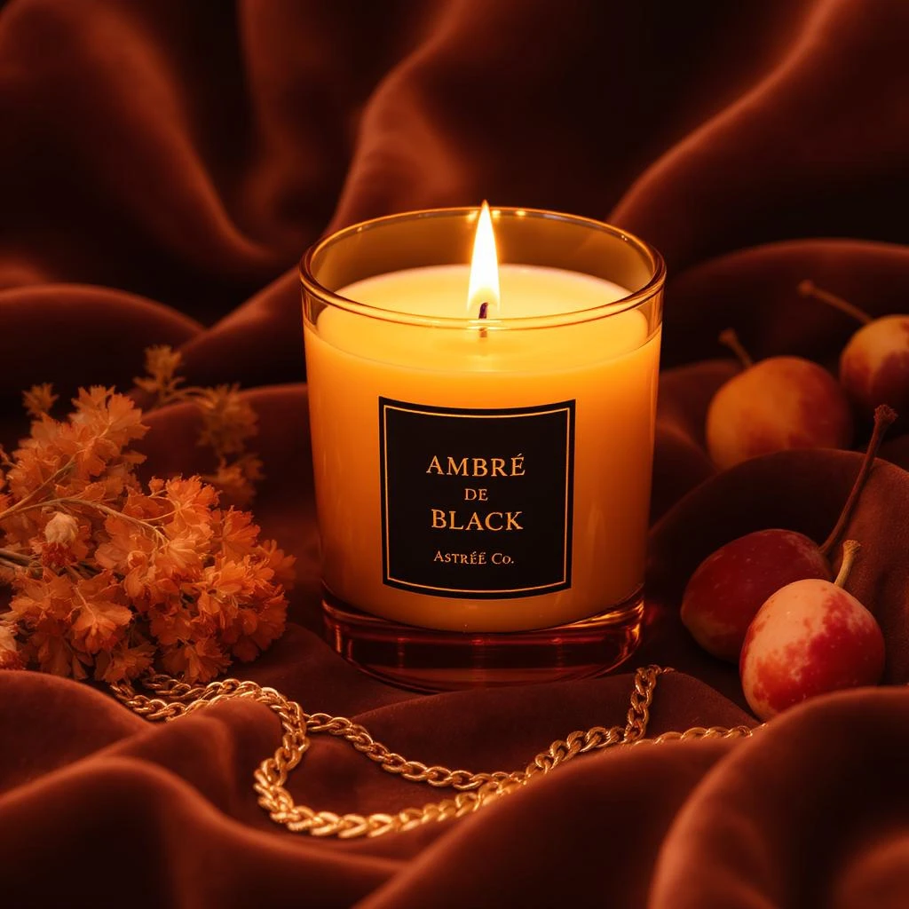 Ambre de Black is an opulent perfume candle radiating a golden glow of floral richness and soft fruity undertones. It opens with luminous osmanthus that imparts a honeyed, apricot-like brightness. The middle blooms into juicy litchi, adding a sweet freshness, while the base melts into soothing chamomile, creating a soft and serene finish. Hand-poured with creamy white soy wax and infused with premium-grade fragrance oils, Ambre de Black fills any space with warm, inviting elegance.