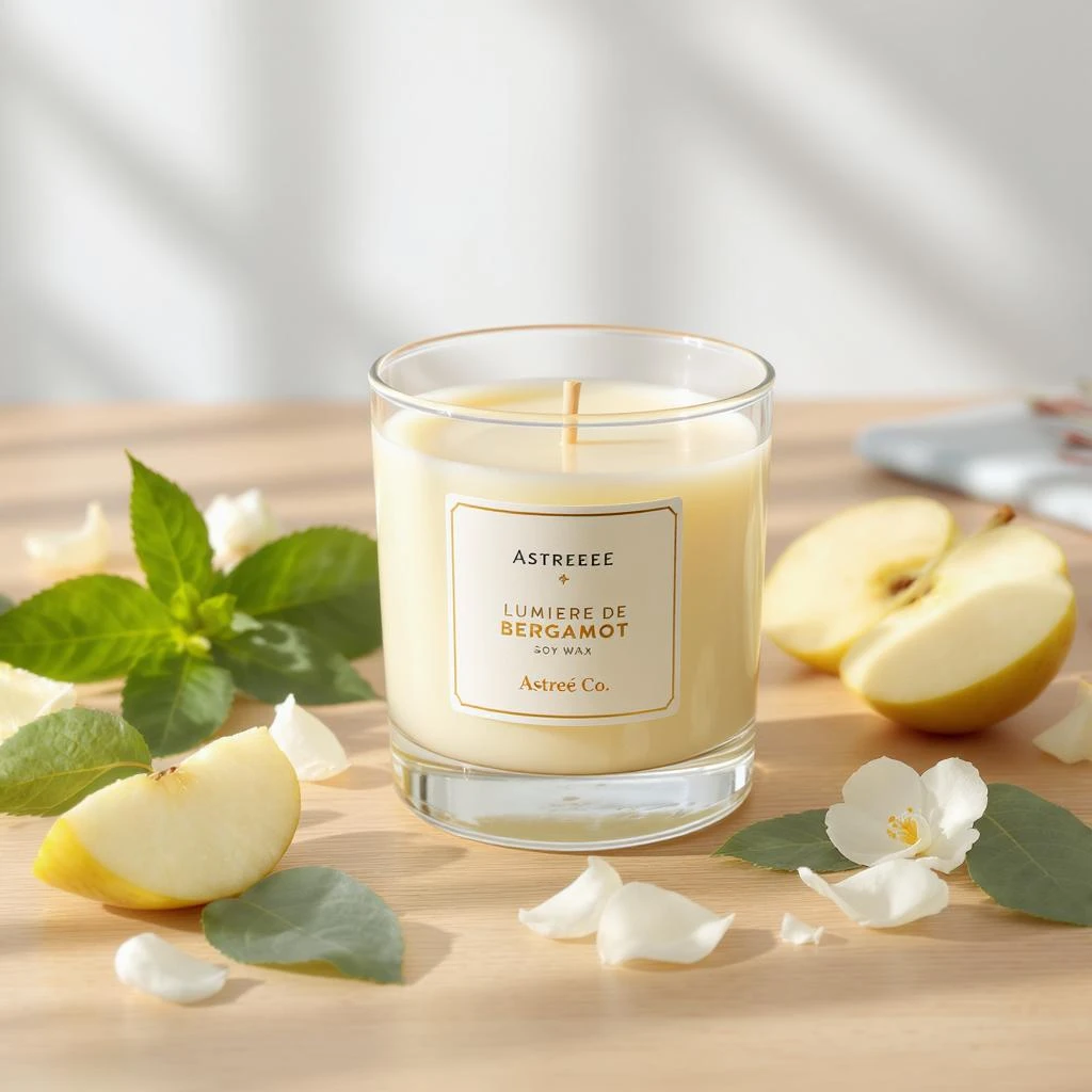 Lumière de Bergamot is a luminous perfume candle that opens with the fresh, botanical brightness of green tea leaves. The heart reveals the crisp sweetness of juicy apple, adding a sparkling fruitiness. The base settles into the softness of white musk, lending elegance and a silky finish. Hand-poured with creamy white soy wax and infused with premium-grade fragrance oils, Lumière de Bergamot brings clarity, freshness, and a modern touch to any interior.