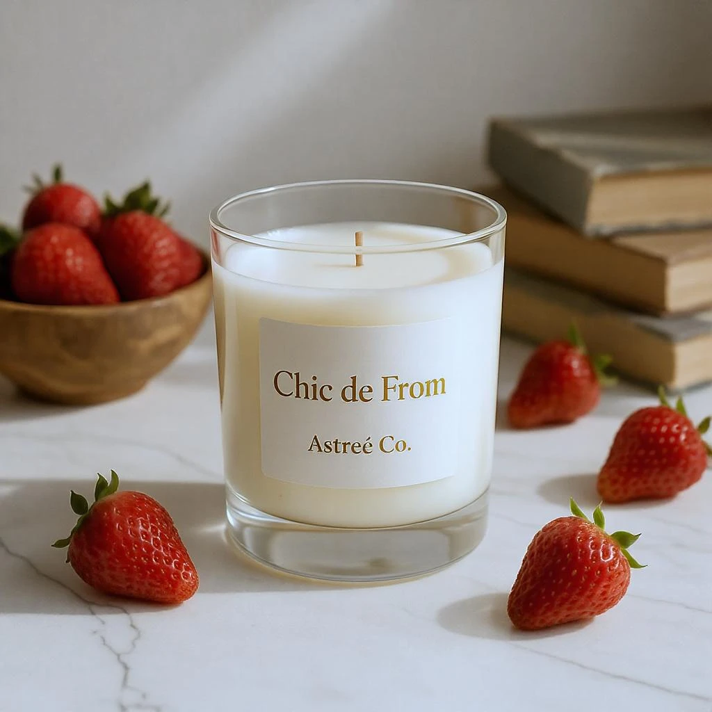 Chic de From is a modern, playful perfume candle that opens with the sharp brightness of fresh fruits. The heart bursts into ripe strawberries, offering a juicy, sweet delight, while the base reveals a mysterious, woody depth reminiscent of old libraries and hidden stories. It’s a fragrance that feels sophisticated yet fun, perfect for chic spaces and creative moments. Hand-poured with creamy white soy wax and infused with premium-grade fragrance oils, Chic de From fills your home with lively elegance and charming intrigue.