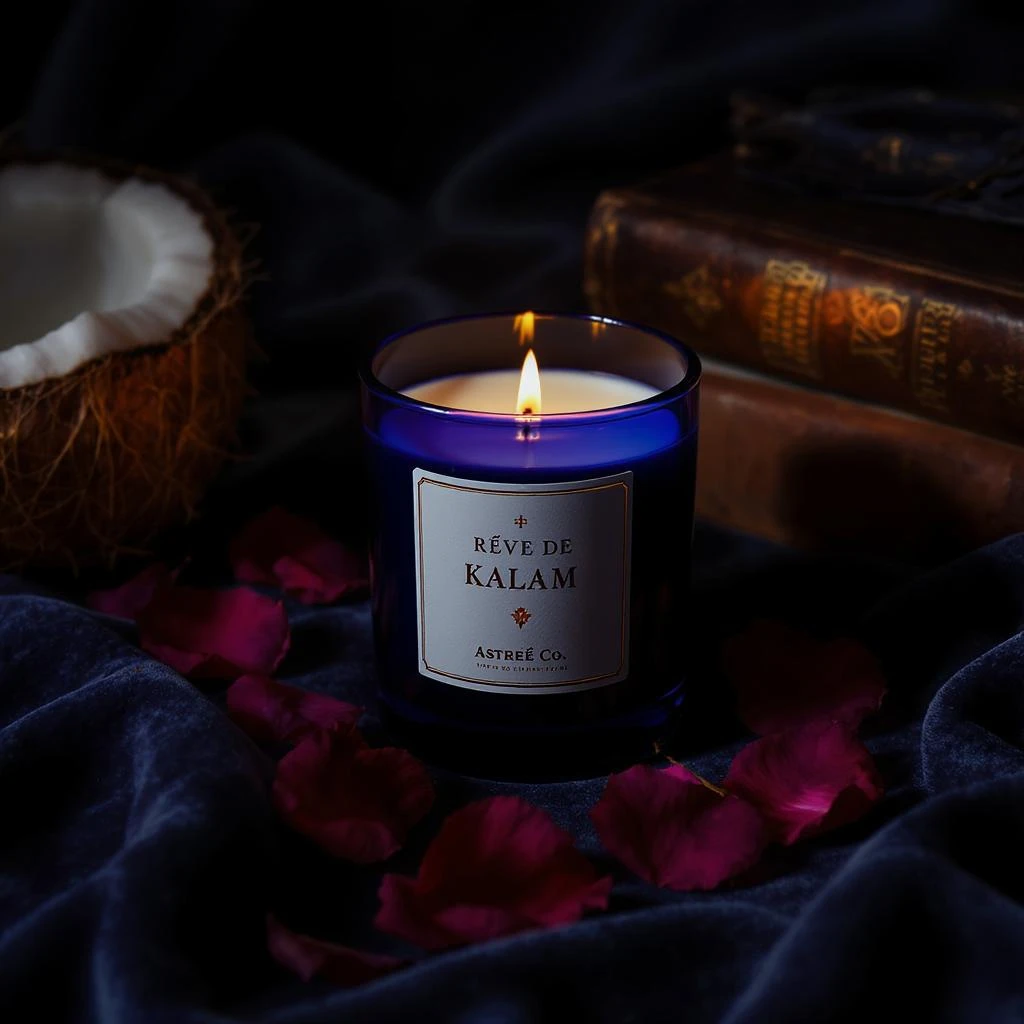 Rêve de Kalam is an enigmatic perfume candle that opens with the deep richness of dark rose petals, layered with a touch of smoky oud for seductive depth. The heart flows into warm wooden nuances reminiscent of old libraries and antique books, while the base settles into a lush, creamy coconut note that adds softness and exotic warmth. It’s a fragrance that feels mysterious, elegant, and quietly luxurious. Hand-poured with creamy white soy wax and infused with premium-grade fragrance oils, Rêve de Kalam transforms any room into an intimate, sophisticated sanctuary.