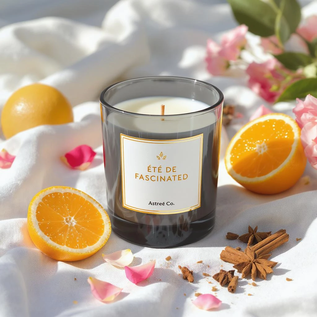 Été de Fascinated is a luminous perfume candle capturing the sunlit brilliance of summer. It opens with the fresh zing of classic cologne notes, sparkling with citrus and aromatic herbs. The heart reveals warm, spicy woods from Kalam, adding a sophisticated and exotic touch. The base blossoms into an opulent rose accord that lends elegance and depth. Hand-poured with creamy white soy wax and infused with premium-grade fragrance oils, Été de Fascinated brings radiant energy and refined beauty to any space.